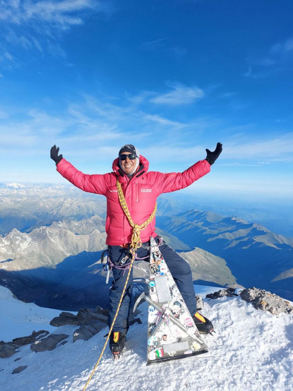 昨天他带领另一组人登上了厄尔布鲁士峰顶。他们在山里练习瑜伽。早上6点,他们到达了5642米的顶峰。