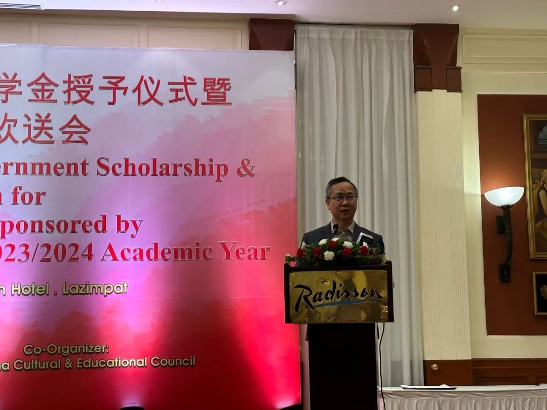 8月14日,中国驻尼使馆举办2023/2024学年中国政府奖学金授予仪式暨尼泊尔留华学生欢送会,陈松大使及尼教育部长阿肖克·库马尔·拉伊、常秘苏雷什·阿迪卡里等出席。