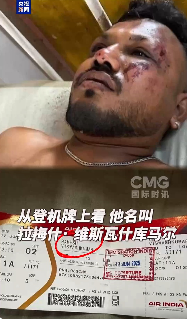 总台记者获悉,拉梅什·维斯瓦什库马尔在飞机起飞前曾与父亲通话,称即将起飞。其家属透露,维斯瓦什库马尔和兄弟埃杰坐在紧急出口附近的座位上。