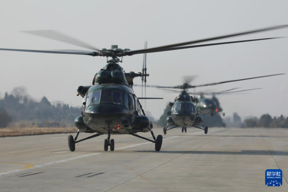 1月6日,武警第二机动总队某支队直升机编队起飞。