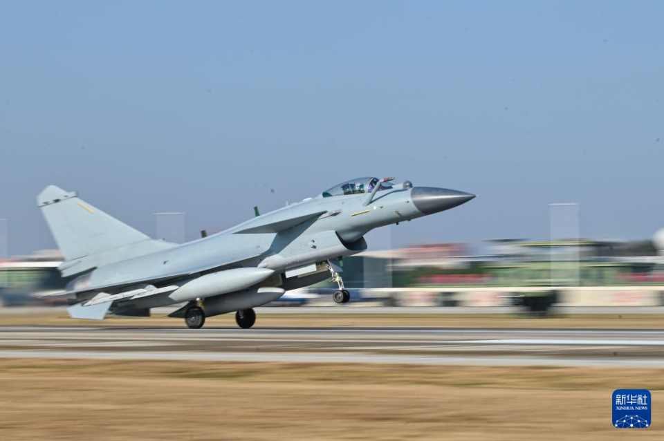 1月5日,东部战区空军航空兵某部组织实战化飞行训练,飞行员驾驶战机加力起飞。