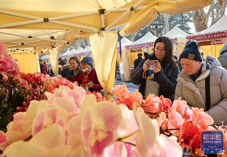 ↑1月23日,市民游客在上海复兴公园年宵花市上选购蝴蝶兰。新华社记者 方喆 摄