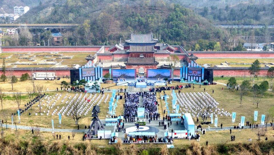 新华社武汉3月21日电(记者宋立崑)首个“国际太极拳日”十堰会场主题展演活动开幕式暨“百国千城万场”云太极全球快闪活动,21日在湖北省十堰市武当山旅游经济特区遇真宫广场举行。